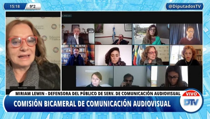 «El informe que van a recibir abarca el año calendario como es tradicional e histórico en la Defensoría del Público, luego hay un anexo que refieren a lo hecho en los primeros meses del 2021 y una proyección hacia la segunda mitad del año», explicó Lewin en el inicio, por videoconferencia, de la reunión de la comisión bicameral de Promoción y Seguimiento de la Comunicación Audiovisual, las Tecnologías de las Telecomunicaciones y la Digitalización.