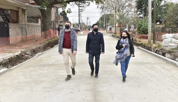 El intendente de Malvinas Argentinas, Leo Nardini, visitó la obra de pavimentación que se realiza en las calles Patricias Mendocinas y Ricardo Rojas de la ciudad de Grand Bourg.