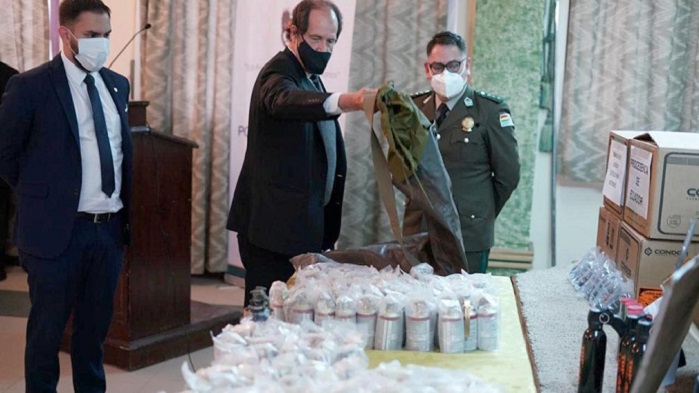 Allí confirmó además que en noviembre de 2019 «ingresaron desde la Argentina armas de manera ilegal, sin registros» a Bolivia, y se informó que ya se han «se encontraron 26.900 balas antitumulto 12/70 en un depósito de la Policía» que son parte de las 70.000 balas de gomas que la Gendarmería argentina pidió sacar del país con el argumento de defender la embajada argentina en el Estado Plurinacional.