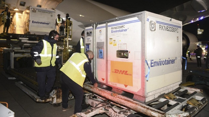 El Boeing 767-300 de la empresa Latam Cargo Colombia, con el número de vuelo UC1101, aterrizó a las 18.57 en el aeropuerto internacional de Ezeiza con 1.349.700 dosis del suero desarrollado en conjunto por la Universidad de Oxford y el laboratorio AstraZeneca, y cuyo componente activo se produce en el país.