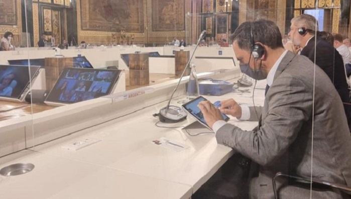 Cabandié participó esta jueves por la mañana de la Reunión Ministerial Conjunta del G20 que se realiza en el Palacio Real de Nápoles y continuará mañana viernes con el encuentro de Clima y Energía, según un comunicado de su Ministerio.