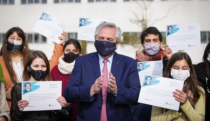 Al anunciar la ampliación de las becas «Manuel Belgrano», destinadas a estudiantes de universidades nacionales y provinciales de carreras estratégicas, en un acto que se realizó en la Universidad Nacional Arturo Jauretche (UNAJ), en la ciudad bonaerense de Florencio Varela, Fernández dijo: «El futuro no está en la riqueza bajo la tierra, está en la inteligencia».