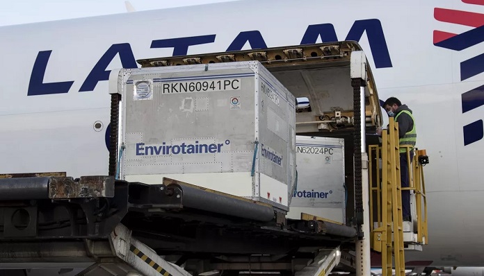 El vuelo UC1101 de la línea aérea Latam Cargo Colombia, aterrizó a las 17.52 en el aeropuerto de Ezeiza procedente de Miami con 800.500 vacunas, y así Argentina ya recibió un total de 41.833.930 dosis, de las que más de 16 millones llegaron este mes.