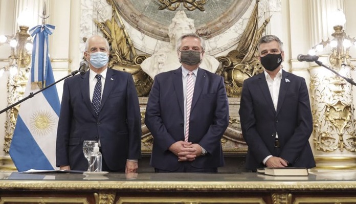 Jorge Taiana y Juan Zabaleta asumieron como ministros de Defensa y de Desarrollo Social, en reemplazo de Agustín Rossi y Daniel Arroyo, respectivamente, tras prestar juramento ante el presidente Alberto Fernández en la Casa de Gobierno.