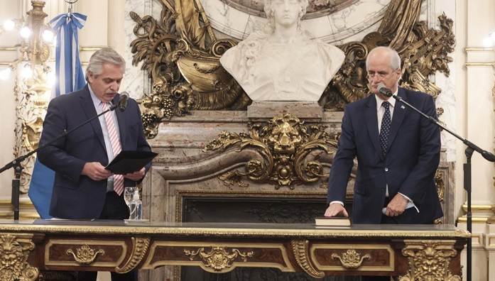 El ministro de Defensa, Jorge Taiana, recibió el saludo de los jefes de las Fuerzas Armadas, tras jurar en el nuevo cargo ante el presidente Alberto Fernández en la Casa Rosada, y este miécoles encabezará el acto por el Día de la Fuerza Aérea Argentina, en su primera actividad oficial al frente de la cartera.