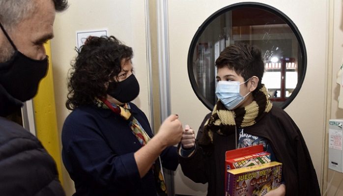 La ministra de Salud, Carla Vizzotti, y el ministro de Desarrollo Social, Juan Zabaleta, visitaron este domingo el Hospital Nacional de Pediatría «Juan Garrahan» por el Día de las Infancias para entregar regalos a niños, niñas y adolescentes internados en ese nosocomio.