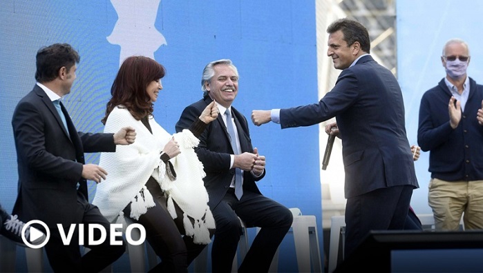 El Frente de Todos reivindicó el «compromiso con el bienestar del pueblo». «Hagamos el país que nos merecemos», exhortó el Presidente y enumeró la herencia dejada por el gobierno de Cambiemos para mostrar las dos caras de la moneda. Discursos completos de Alberto y Cristina.