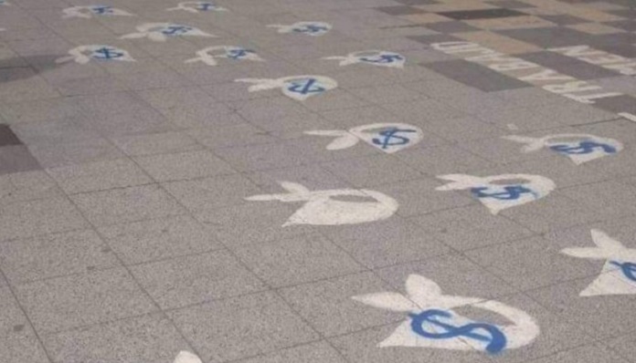 Los actos de vandalismo ocurrieron en Mar de Plata frente a la Catedral sobre los simbólicos pañuelos que se encuentran sobre las baldosas y que fueron pintados encima con aerosol.