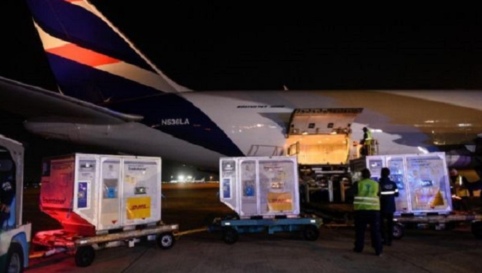 El nuevo lote, de 549.600 dosis, fue donado por Canadá a través del Mecanismo Covax, la iniciativa global para el acceso equitativo a las vacunas contra la enfermedad que causa el virus SARS-CoV-2, y arribó al aeropuerto internacional de Ezeiza a las 21.15 en el vuelo UC1101 de la empresa LATAM Cargo Colombia.