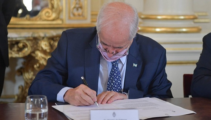 La firma se concretó en una reunión en la Casa Rosada de la que participaron, además, el jefe de Gabinete, Juan Manzur; ministros del Gobierno nacional y todo el gabinete de la provincia de Catamarca.