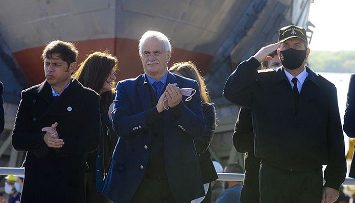 Junto a Taiana y Kicillof estuvieron el ministro de Producción, Ciencia e Innovación Tecnológica de la provincia de Buenos Aires, Augusto Costa; el jefe del Estado Mayor de la Armada, Julio Horacio Guardia y Pedro Wasiejko, presidente del Astillero Río Santiago.