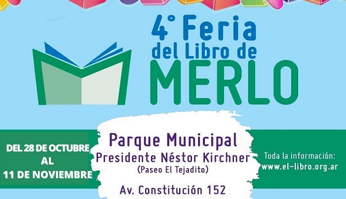 La Feria del Libro de Merlo es un evento cultural y literario organizado por el Estado Municipal a través de la Secretaría de Cultura, en conjunto con la Fundación El Libro y la Sociedad Argentina de Escritores. Se realizará en el Parque Municipal Presidente Néstor Kirchner (Paseo El Tejadito): Constitución 152, Merlo Sur.