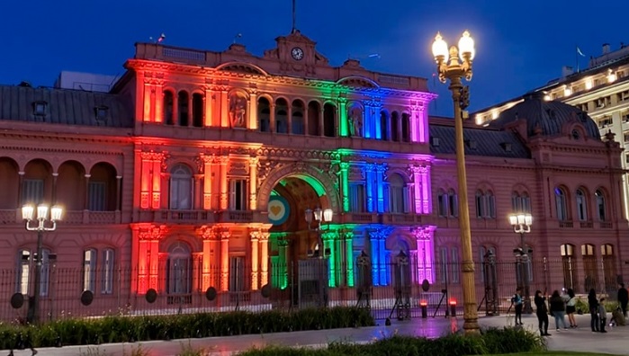 De esta forma, siete colores que representan el arco iris como emblema de la diversidad tiñeron la fachada de la sede gubernamental, mientras una multitudinaria movilización se congregaba en las principales arterias del centro porteño, Plaza de Mayo y Plaza Congreso.