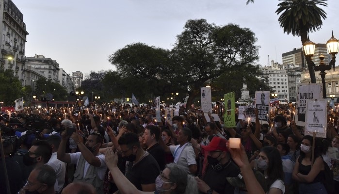 Familiares y amigos de Lucas González, acompañados por miles de personas que portaban banderas argentinas, participaron esta tarde de una manifestación en reclamo de Justicia, donde la madre del adolescente aseguró que su hijo llevaba como única arma «los botines rotos» y reclamó «la prisión perpetua para los tres» policías que participaron del hecho porque «tiraron a matar».