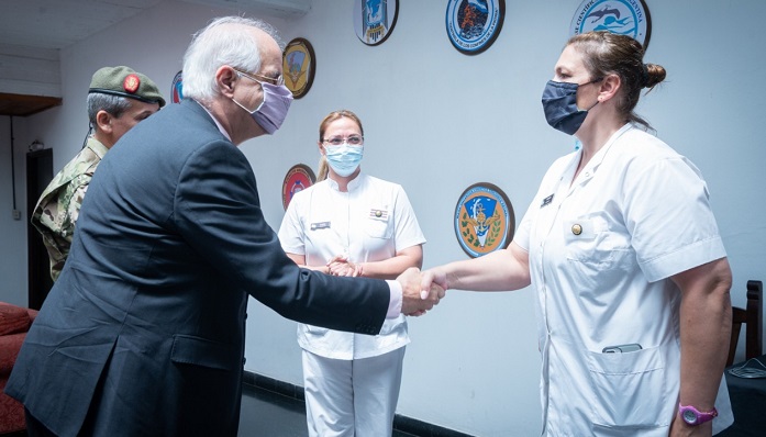 Acompañaron al ministro Taiana, el secretario de Malvinas, Antártida y del Atlántico Sur, Guillermo Carmona; el jefe de Gabinete del Ministerio de Defensa, Héctor Mazzei; el secretario de Asuntos Internacionales para la Defensa, Francisco Cafiero, y la subsecretaria de Planeamiento Operativo y Servicio Logístico de la Defensa, Lucía Kersul.
