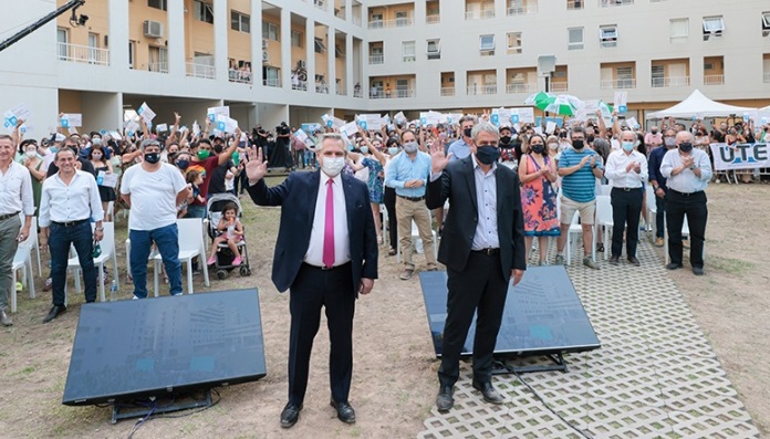 «Tenemos 100 mil viviendas en construcción y hacen falta muchas más, porque muchos argentinos están necesitando de esas viviendas», destacó el mandatario durante el acto, donde estuvo acompañado por el ministro de Desarrollo Territorial y Hábitat, Jorge Ferraresi.