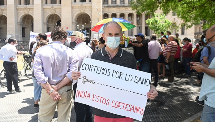 En la misma línea, el SitrajuRA, dirigido por Agustín Bruera, convocó a marchar con el mensaje «Todxs a Tribunales» para pedir una justicia «justa», terminar con el «lawfare», y en rechazo a la Corte Suprema de «injusticia» de la Nación, bajo el hashtag «1F Marchamos A La Corte».