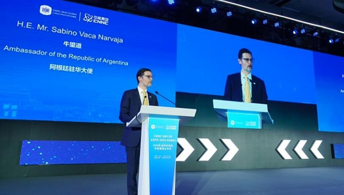 El embajador argentino en China, Sabino Vaca Narvaja, habló este miércoles por videoconferencia desde Beijing al participar como expositor en la inauguración del stand que la empresa estatal China National Nuclear Corporation (CNNC) instaló en la feria internacional Dubai Expo 2020, organizada por los Emiratos Árabes tras una postergación producto de la pandemia.