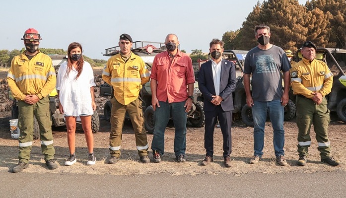 El gobernador de la provincia de Buenos Aires, Axel Kicillof, visitó el sábado el municipio de General Alvarado, junto al ministro de Seguridad, Sergio Berni, la ministra de Ambiente, Daniela Vilar, y el intendente Sebastián Ianantuony, tras el incendio que afectó 240 hectáreas en la localidad de Miramar y afirmó: «aquí se contuvo un incendio que fue dramático, pero afortunadamente las pérdidas fueron solo materiales».