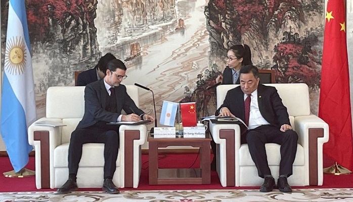 «Gracias a los esfuerzos entre Argentina y China es inminente la firma de una nueva adenda financiera», aseguró Vaca Narvaja en la reunión con el presidente de China Energy Engineering Corporation (CEEC); Song Hailian, según difundió la Embajada argentina.