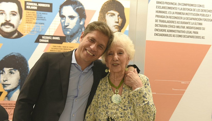 Durante el evento que tuvo lugar en La Plata, Kicillof estuvo acompañado por el presidente del Banco, Juan Cuattromo; la ministra de Gobierno bonaerense, Cristina Álvarez Rodríguez; la presidenta de la Asociación Abuelas de Plaza de Mayo, Estela de Carlotto, y su cofundadora, Delia Giovanola.