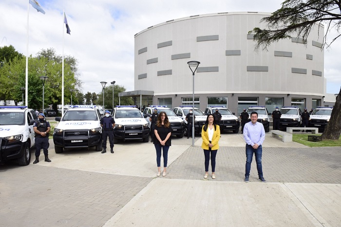 La intendenta interina de Malvinas Argentinas, Noe Correa, y el ministro de Infraestructura y Servicios Públicos de la Provincia de Buenos Aires, Leo Nardini, realizaron la presentación de diez nuevos patrulleros para las Fuerzas de Seguridad del distrito.