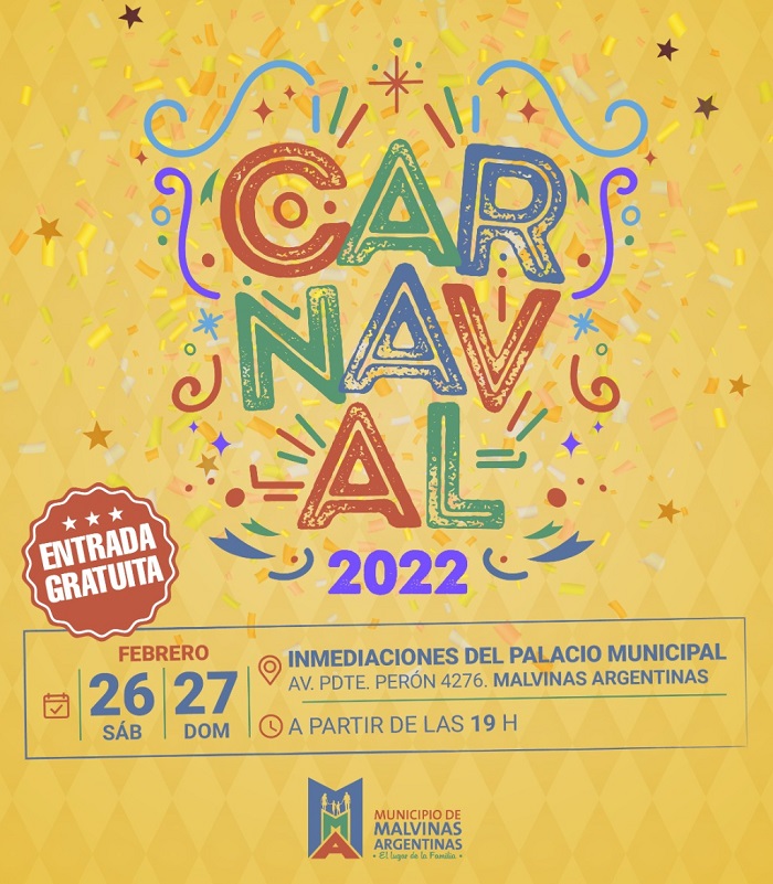 El Carnaval de la Familia que ya es un clásico en el distrito se hará el sábado 26 y domingo 27 de febrero en las inmediaciones del Palacio Municipal de Malvinas Argentinas, Av. Pdte. Perón 4276.