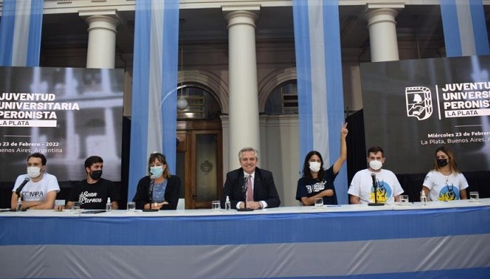Como titular del Partido Justicialista, el Presidente encabezó el acto de relanzamiento de la JUP, en el Rectorado de la Universidad Nacional de La Plata. Se mostró entusiasmado: «Me pone muy contento ver que la juventud milita».