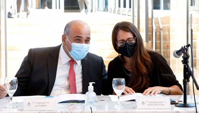El Jefe de Gabinete, Juan Manzur, y la ministra de las Mujeres, Géneros y Diversidad, Elizabeth Gómez Alcorta, encabezaron hoy un nuevo encuentro de trabajo del primer Gabinete de Transversalización de las Políticas de Género que busca «garantizar que la perspectiva se traduzca de manera efectiva en políticas públicas».