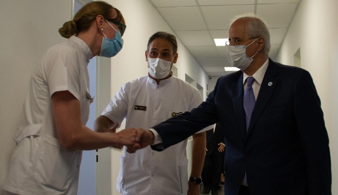 El titular de Defensa aprovechó la ocasión para felicitar «a todo el personal militar, civil, médicos y asistentes del Hospital Militar Central por la enorme tarea desarrollada en los momentos más difíciles de la pandemia» de coronavirus.