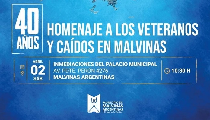 El municipio de Malvinas Argentinas prepara un acto en homenaje a los Veteranos y Caídos en Malvinas, a 40 años del conflicto bélico. El mismo será el sábado 2 de abril en las inmediaciones al Palacio Municipal (Av. Pdte. Perón 4276, ciudad de Malvinas Argentinas). Participarán los soldados homenajeados, funcionarios, y se extiende la invitación a la sociedad en general, a partir de las 10.30 horas.