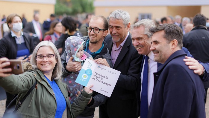Acompañado por el gobernador neuquino, Omar Gutiérrez, y el ministro de Desarrollo Territorial y Hábitat, Jorge Ferraresi, el Presidente visitó las viviendas e hizo entrega de las llaves de las unidades, que fueron construidas por el Instituto Provincial de la Vivienda (IPV) en el Sector «A» del exKartódromo del departamento de Confluencia.