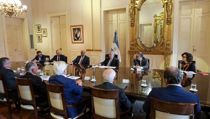 En el encuentro el presidente estuvo acompañado por el jefe de Gabinete, Juan Manzur; los ministros de Economía, Martín Guzmán, y de Desarrollo Productivo, Matías Kulfas; y los secretarios de Relaciones Económicas Internacionales, Cecilia Todesca Bocco, y de Asuntos Estratégicos, Gustavo Béliz.