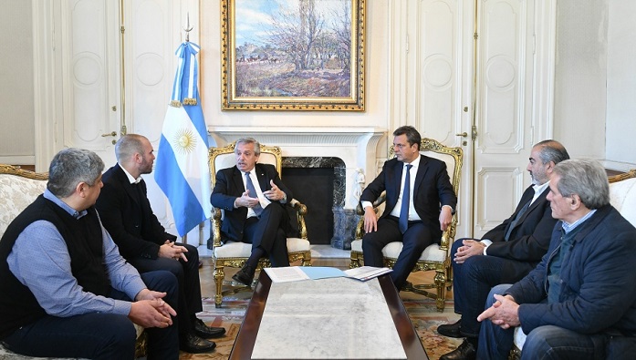 El encuentro entre el Presidente, Massa, Guzmán y los secretarios generales de la CGT se extendió por más de una hora en la antesala del Salón Eva Perón, donde se consideraron los últimos detalles de números de la propuesta que había traído el ministro de Economía, comentaron fuentes oficiales.