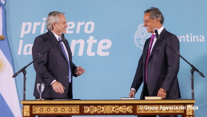 El presidente Alberto Fernández le tomó, este miércoles, juramento a Daniel Scioli como ministro de Desarrollo Productivo y pidió la «máxima unidad» y el «máximo esfuerzo de cada argentino» ante un escenario que estará condicionado por la «coyuntura internacional», en referencia a la guerra en Ucrania.
