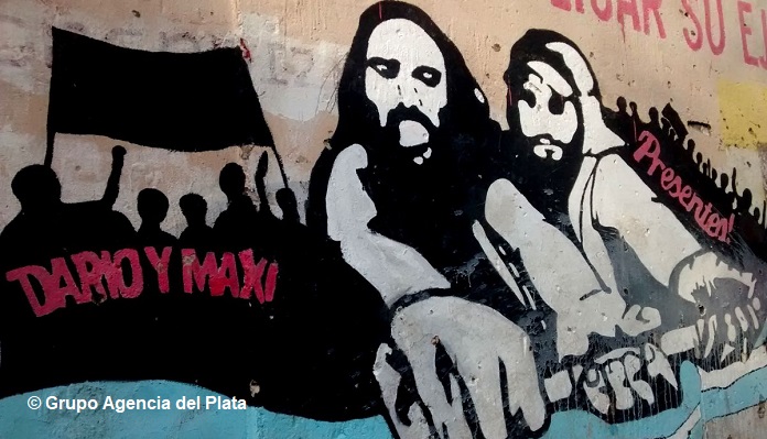 «El 26 de junio de 2002, el Estado argentino reprimió una marcha piquetera y asesinó Maximiliano Kosteki y Darío Santillán. El diario Clarín escribía que ‘ la crisis causó dos nuevas muertes’, mientras que los funcionarios repetían: “Se mataron entre ellos”, recordaron en un comunicado de prensa conjunto.
