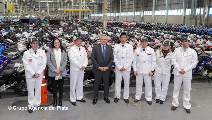 Durante la recorrida por la planta, el Presidente manifestó su satisfacción por «ver que la economía sigue creciendo y avanzando, y que la producción sigue aumentando», en ámbitos como el de la «Ley de Promoción en la Producción de Motocicletas que vence en el 2023 y que tenemos que sostener y mejorar».