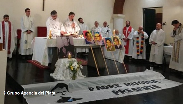 En el documento se recuerda que «un exmilitar (Aldo Rico), paradigma de la insubordinación, escudado hipócritamente tras la imagen de la Virgen, agita el fantasma de la época más oscura de la historia reciente de nuestro país. Medios de comunicación concentrados y concertados para demoler la esperanza de nuestro pueblo en un futuro mejor».