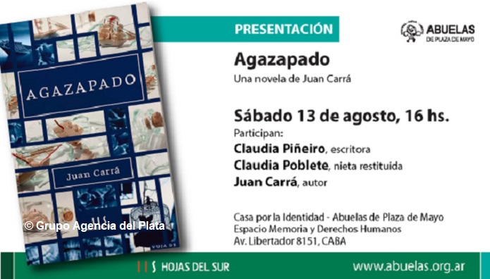 La Asociación de Abuelas de Plaza de Mayo presentará el libro «Agazapado» del escritor y periodista Juan Carrá, quien junto a la escritora Claudia Piñero y la nieta restituida Claudia Poblete, conversarán sobre esta novela negra que «invita a reflexionar sobre el proceso de Memoria, Verdad y Justicia».