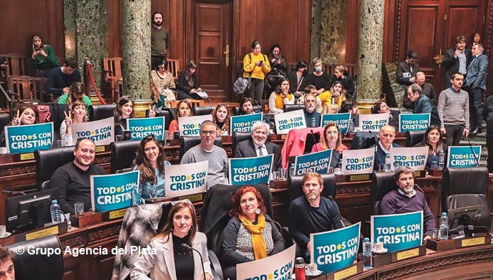 El bloque de legisladores porteños del Frente de Todos (FdT) manifestó su apoyo a la vicepresidenta Cristina Fernández de Kirchner durante la sesión en la Legislatura Porteña, a la que acudieron con carteles que decían «Todos con Cristina».