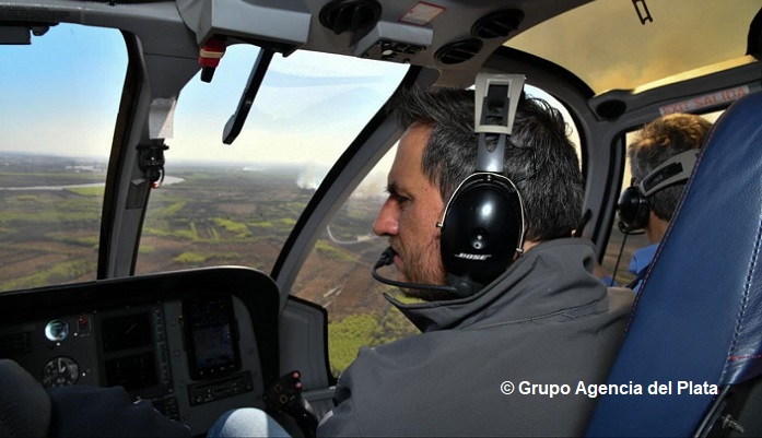 El ministro, acompañado por el secretario de Control y Monitoreo Ambiental, Sergio Federovisky y el director del Servicio Nacional de Manejo del Fuego (SNMF), Alberto Seufferheld, sobrevoló la zona afectada por los incendios en el norte de Buenos Aires, Entre Ríos y Santa Fe.
