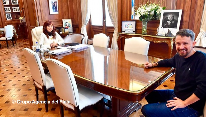La vicepresidenta Cristina Fernández de Kirchner recibió en su despacho del Senado al político español Pablo Iglesias, quien le entregó el libro «Medios y Cloacas», un trabajo de su autoría que refleja la forma en la cual han influido los medios de comunicación en la vida pública.