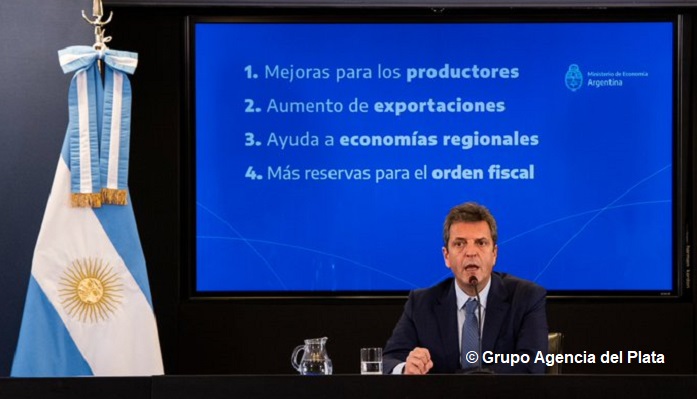 En una conferencia de prensa, Massa dio detalles de este nuevo esquema que solo estará vigente por 25 días, que «pretende generar un régimen de promoción de exportaciones, fortalecer las reservas y que sea de forma transparente».