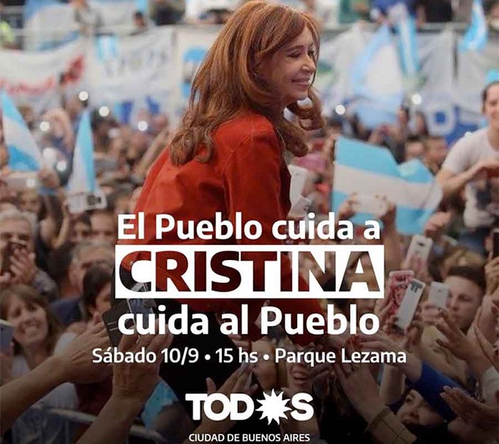 «El pueblo cuida a Cristina. Cristina cuida al pueblo. Este sábado a las 15 horas. Todos a Parque Lezama», reza la convocatoria del FdT porteño realizada este miércoles a través de sus redes sociales.