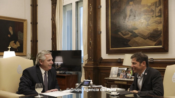 El presidente Alberto Fernández recibió en su despacho de Casa Rosada al gobernador de la provincia de Buenos Aires, Axel Kicillof, para analizar los avances en la licitación y construcción del Canal de Magdalena, que permitirá la conexión marítima entre los puertos del Río de la Plata y del litoral marítimo de las provincias argentinas y establecer un corredor logístico nacional para el comercio exterior.