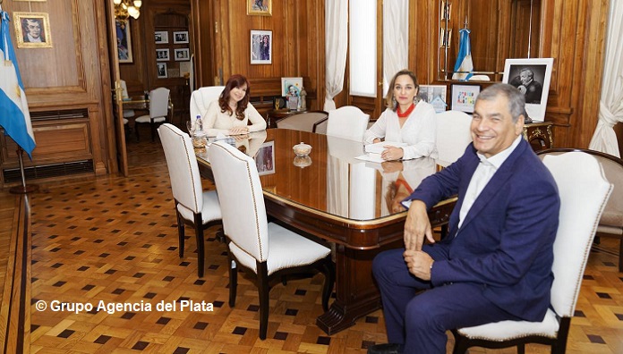 «Hoy recibí a dos queridos amigos y compañeros de Ecuador, Rafael Correa y Gabriela Rivadeneira. Siempre es bueno compartir y conversar con ellos sobre la realidad que viven nuestros pueblos», escribió Cristina Kirchner en su cuenta de Twitter junto a una foto a ambos dirigentes políticos desde su despacho en el Congreso de la Nación.