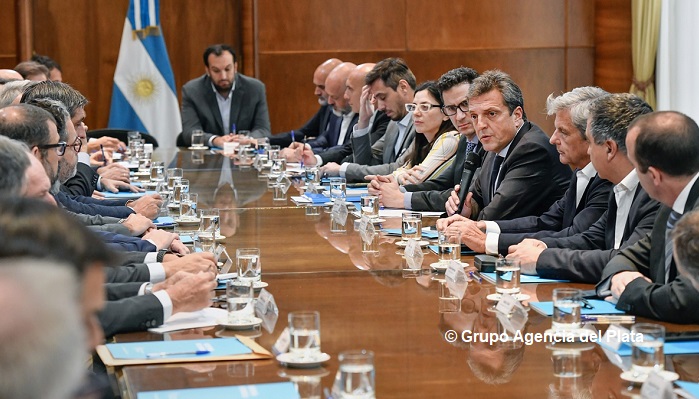 El ministro de Economía, Sergio Massa, acompañado por el secretario de Comercio, Matías Tombolini, recibió este jueves a representantes de empresas de consumo masivo, supermercados y mayoristas para evaluar el funcionamiento del programa Precios Justos, reforzar el abastecimiento de los productos que forman parte del acuerdo y continuar trabajando en conjunto para bajar la inflación.