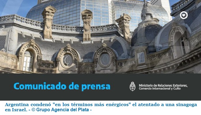 «Argentina condenó en los términos más enérgicos el atentado a una sinagoga en Israel».