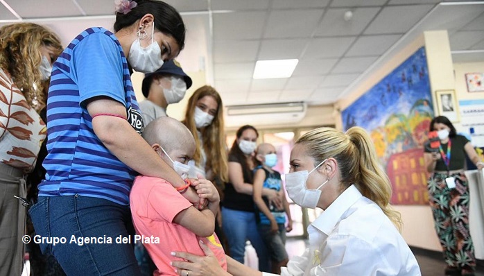 La Primera Dama Fabiola Yañez, visitó la Casa Garrahan, donde compartió una merienda y entregó 60 mochilas con útiles escolares a niños en tratamiento oncológico.