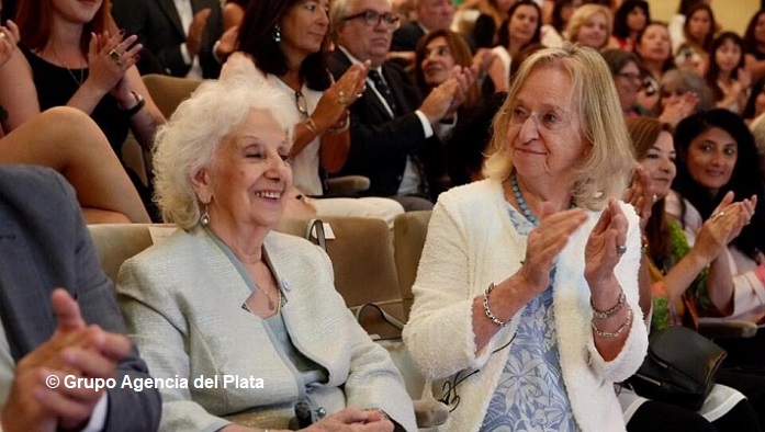 Carlotto, entre otros presentes, recibió la designación de Primera Asesora Honoraria de la entidad anfitriona y fue presentada como «símbolo de las mujeres luchadoras». «No saben lo que representa la justicia para nosotras, las Abuelas de Plaza de Mayo; es lo que nos lleva a la verdad, al encuentro y a la felicidad de cada abuela que ha encontrado su nieto para hacerla feliz, aunque la ausencia de sus padres, que son nuestros hijos, es tremenda», indicó Carlotto.